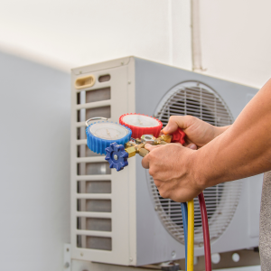 The cooling process in refrigerant systems depends on phase change and pressure manipulation. A refrigerant fluid is compressed in your air conditioner’s compressor, increasing its temperature and turning it into a hot, high-pressure liquid state.